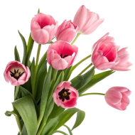 A bouquet of delicate pink tulips against a dark background